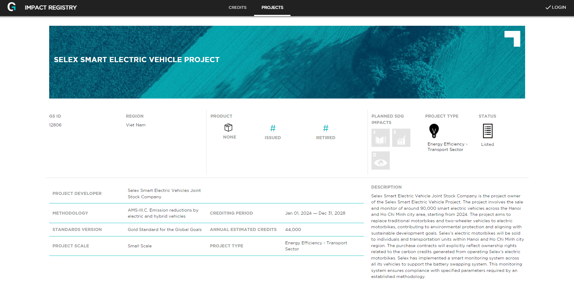 Dự án này là sự hợp tác giữa Chương trình Phát triển Liên Hợp Quốc tại Việt Nam và Selex Motors, nhằm giảm lượng KNK bằng cách thay thế các phương tiện chạy bằng xăng truyền thống bằng xe máy điện. Bằng cách thúc đẩy giao thông điện, dự án không chỉ giúp cải thiện chất lượng không khí mà còn hỗ trợ cam kết của Việt Nam trong việc đạt được mức phát thải ròng bằng 0 vào năm 2050.