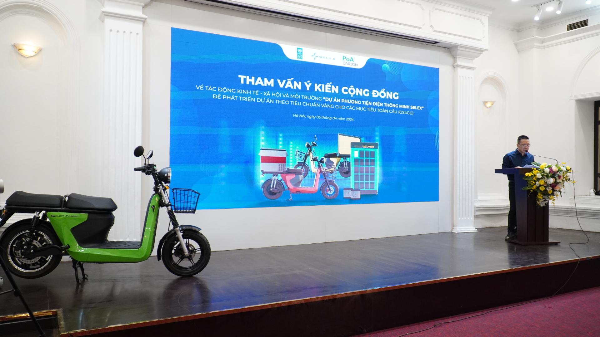 Vào chiều ngày 5/4 tại Hà Nội đã diễn ra hội thảo tham vấn ý kiến cộng đồng của “Dự án phương tiện điện thông minh Selex”. Sự kiện này là kết quả của sự hợp tác giữa Công ty PoA Carbon và Công ty Cổ phần Phương tiện điện thông minh Selex, được tài trợ bởi Chương trình Phát triển Liên hợp quốc (UNDP). Hội thảo nhằm mục đích thu nhận phản hồi từ cộng đồng về các tác động kinh tế-xã hội và môi trường của dự án, đặc biệt trong bối cảnh biến đổi khí hậu đang đặt ra những thách thức ngày càng lớn trên toàn cầu.